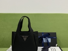 【P1130】普拉达包包价格 Prada专柜限量款进口牛皮手提菜篮子包 黑色