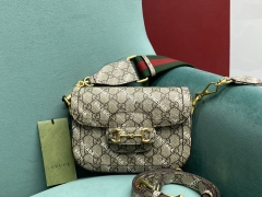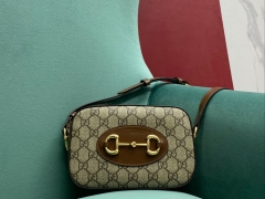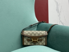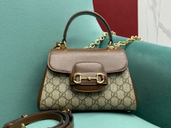 【P1350】Gucci1955新款 古驰老花配啡色牛皮703848马街扣手提包斜挎包