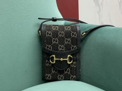 【P830】一件代发 Gucci古奇625615黑色丹宁配皮斜挎手机包单肩包