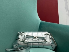 【P1400】古驰2024新款包包 Gucci Horsebit马衔扣链条包手包 银色