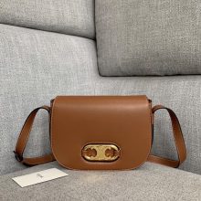 思琳包包批发 Celine走秀款193123黄褐棕进口牛皮凯旋门扣斜挎马鞍包23CM