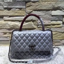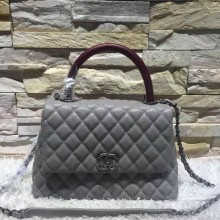 Chanel香奈儿球纹菱格包 灰色包身拼酒红色手柄 带LOGO链条单肩包 送礼佳选