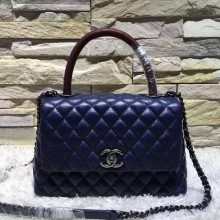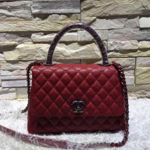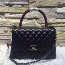 Chanel 香奈儿官网 顶级原单手提包 酒红色手柄搭配黑色包身 专柜原版皮菱格包