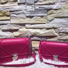 Dior 迪奥 0622羊皮配色里 玫红色 菱格带LOGO链子单肩包 高档礼盒